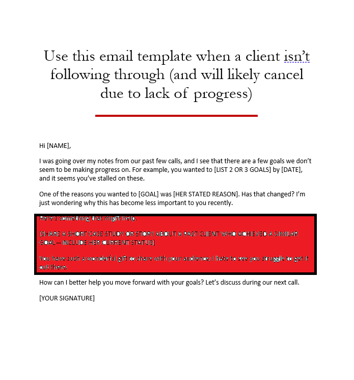 Refund; A client who's wasting your time; or cancellation of coaching contract can be tough to deal with in your coaching business. Your purchase will 10 emails that you can use to handle those difficult situations between coach and client: