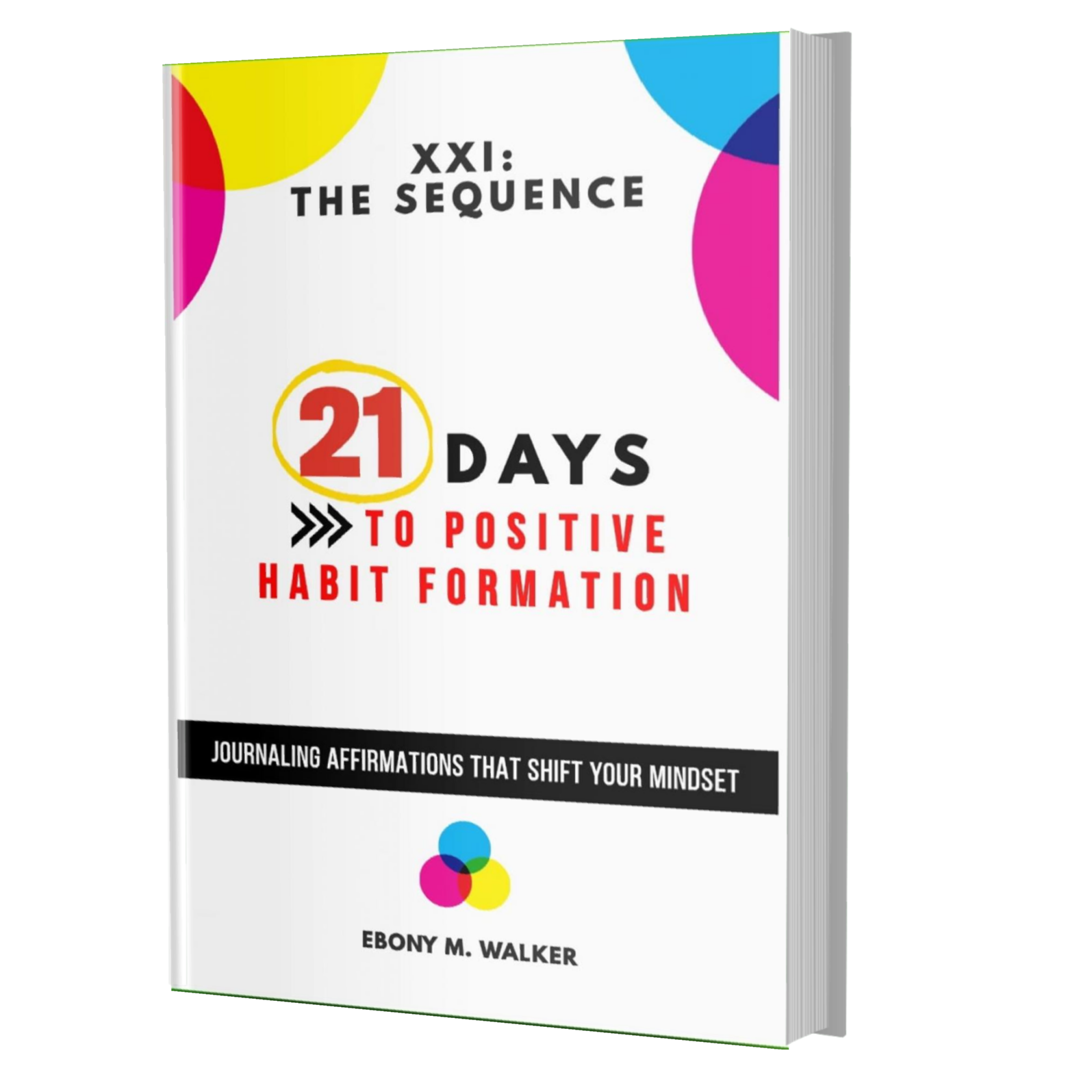 Created by Ebony M. Walker, "XXI: The Sequence - 21 Days to Positive Habit Formation" is an affirmation journal created to promote positive mindset shifts.