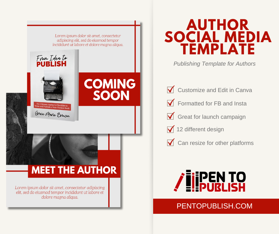 Whether you are launching a new book or just marketing your book, this social media graphics template for Authors will make your life super easy. This template includes designs for:
