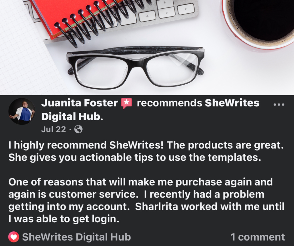 Upon completion of this course, you will access to a 1 to 1 coaching session with Coach Sharlrita. This is an opportunity to get feedback, get business coaching, and create plan of action for success.