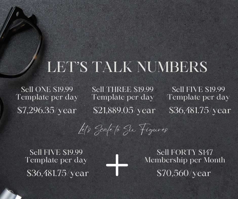 Currently, my template business (membership program plus individual sales) is a six-figure business model. The model includes monthly and annual subscriptions and add-on coaching sessions.