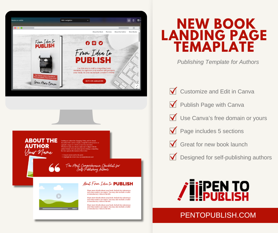 Create and design a one-page website or landing page for your book using this easy-to-customize canva template for authors.